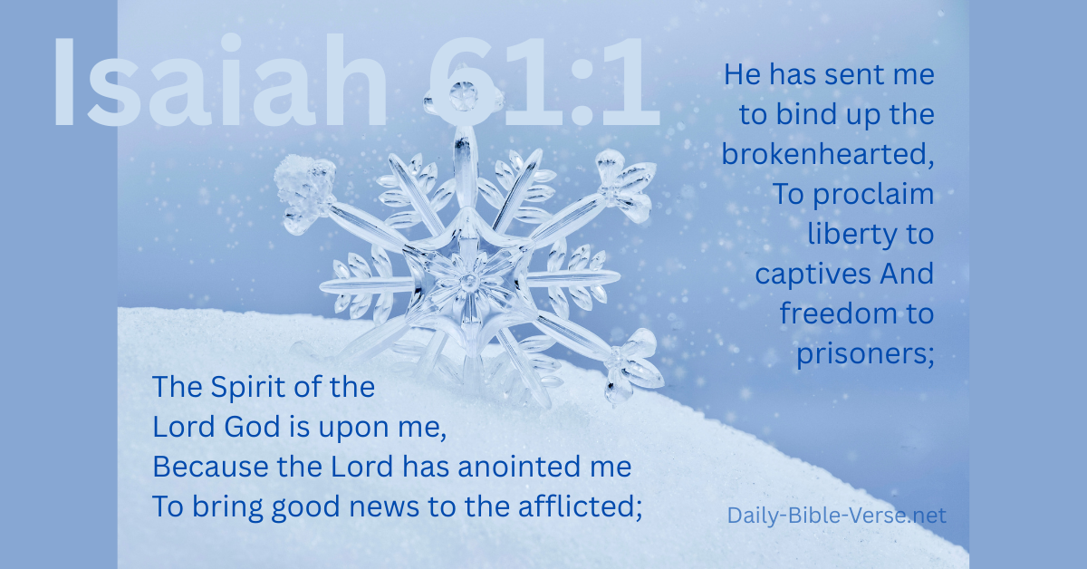 The Spirit of the Lord God is upon me, Because the Lord has anointed me To bring good news to the afflicted; He has sent me to bind up the brokenhearted, To proclaim liberty to captives And freedom to prisoners;