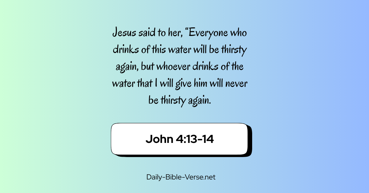 Jesus said to her, “Everyone who drinks of this water will be thirsty again, but whoever drinks of the water that I will give him will never be thirsty again.
